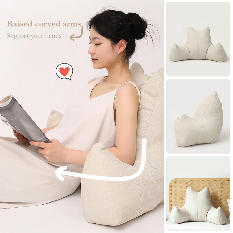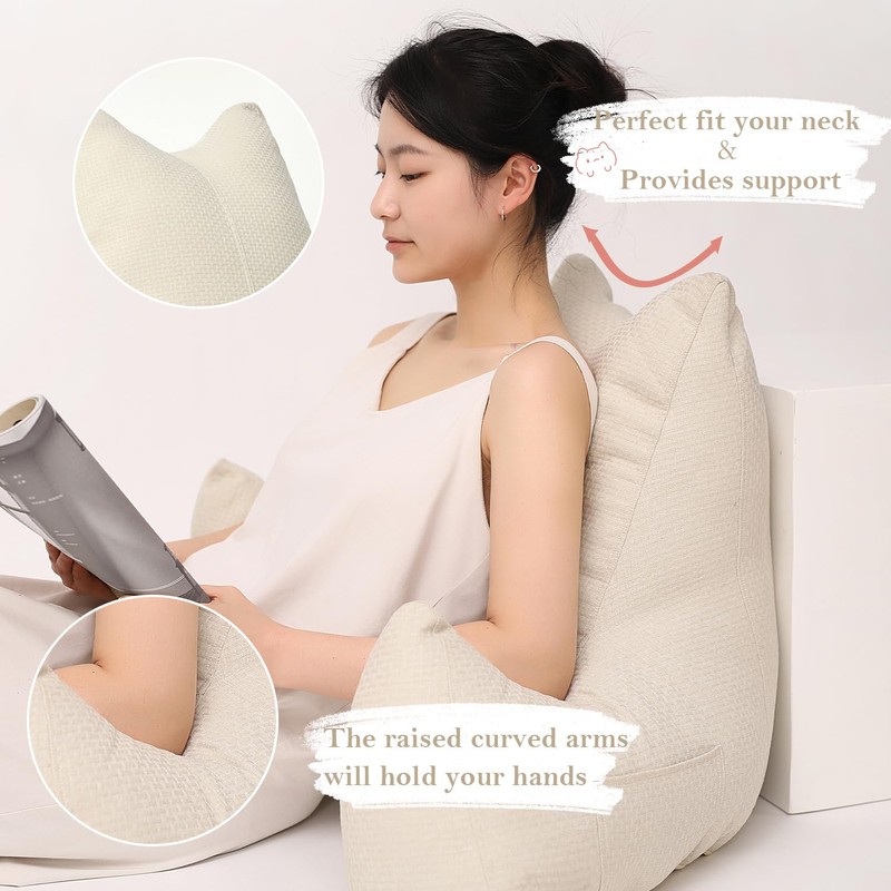 - Unique Cat Ear Design: The design of the cat ear is not only good looking but also does a good job on your body, the special curvature of the reading pillows can support your neck when you lie back, and the raised curved arms will hold your hands, bringing you an enjoyable rest.