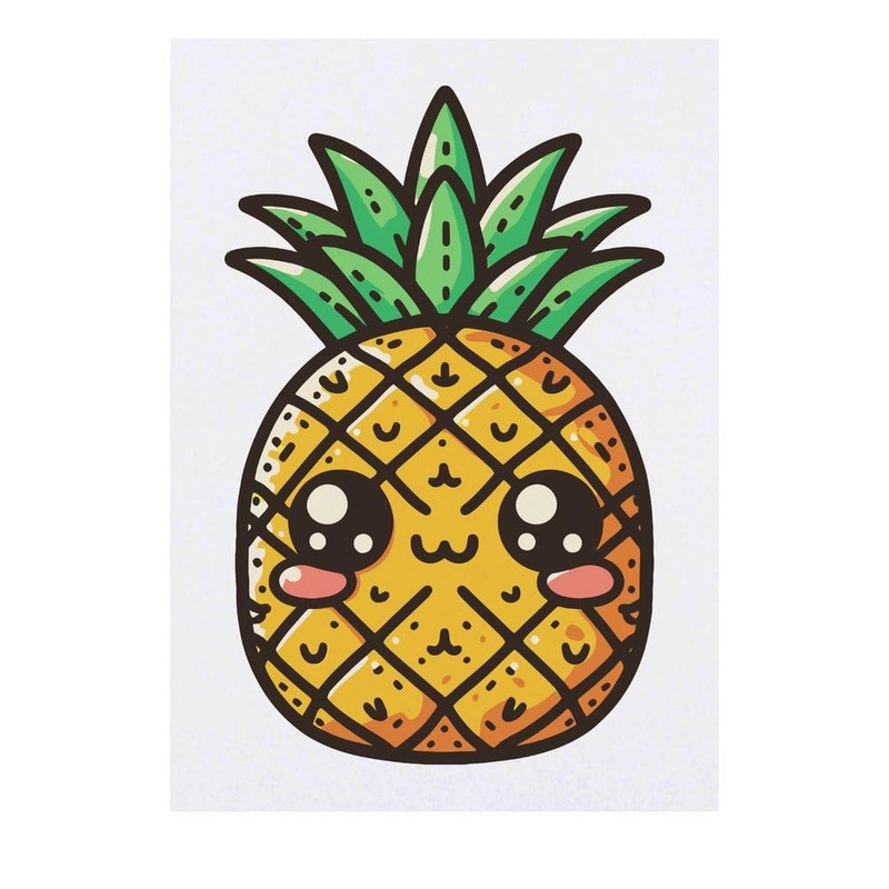 'Kawaii Pineapple' Temporary Tattoo - Water Resistant, Skin-Safe, Non-Toxic Transfer (TO00070685)