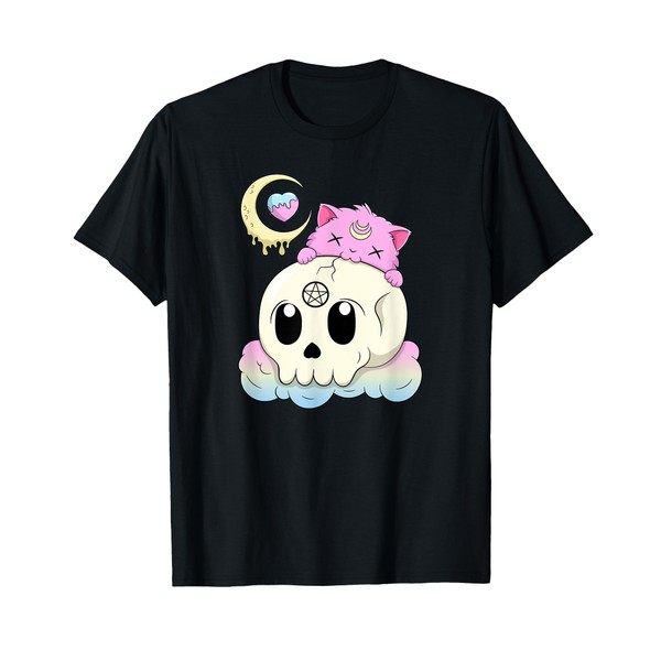Kawaii Pink Pastel Goth Cute Creepy Demon Cat & Skull Anime Men Women Girls Kids T-Shirt