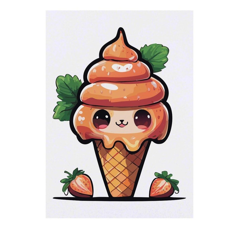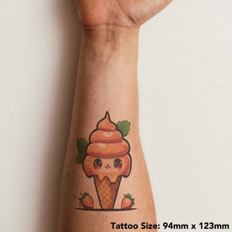 'Kawaii Style Ice Cream Cone ' Temporary Tattoo - Water Resistant, Skin-Safe, Non-Toxic Transfer (TO00069917)
