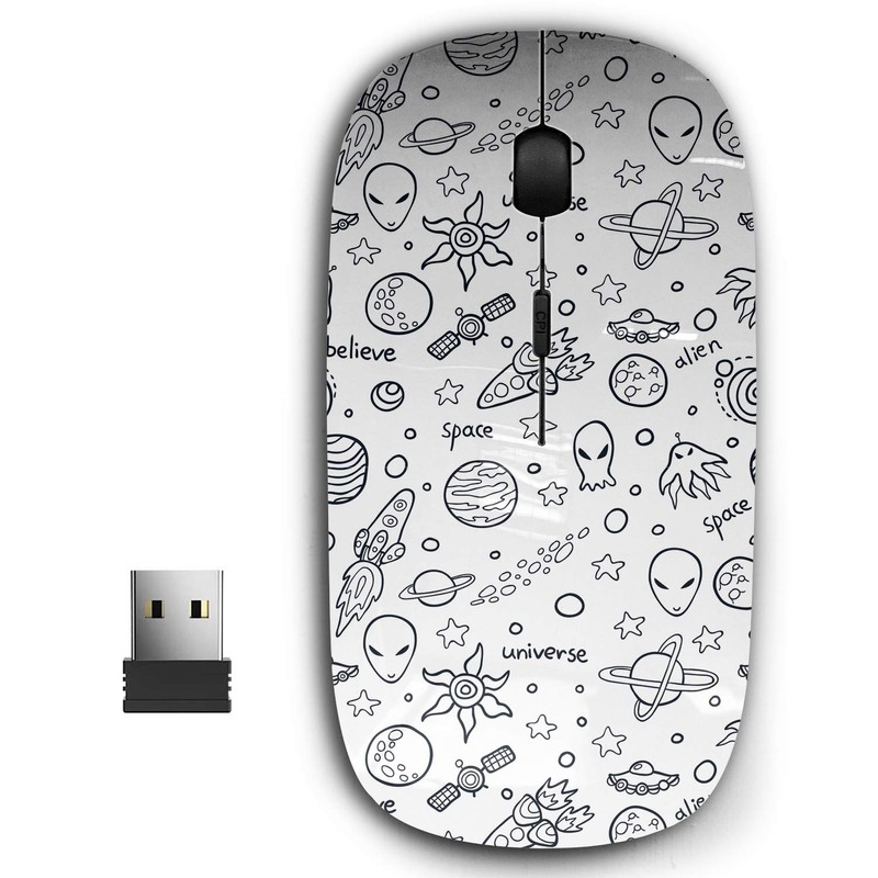KAWAMOUSE 2.4G Ergonomic Portable USB Wireless Mouse for PC, Laptop, Computer, Notebook with Nano Receiver (Cute Space Funny)