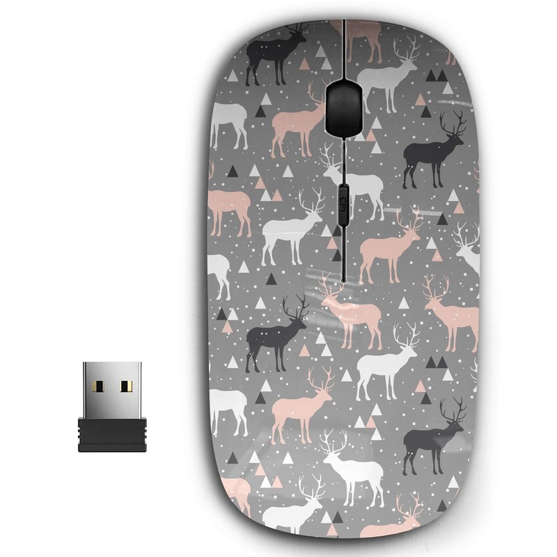 KAWAMOUSE 2.4G Ergonomic Portable USB Wireless Mouse for PC, Laptop, Computer, Notebook with Nano Receiver (Deer Christmas)