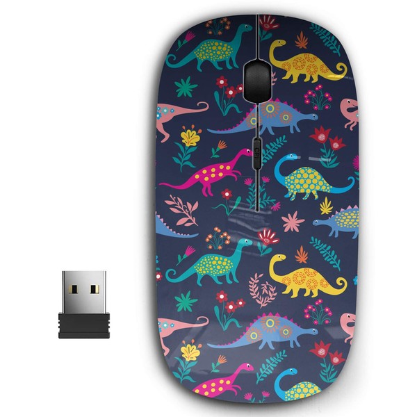 KAWAMOUSE 2.4G Ergonomic Portable USB Wireless Mouse for PC, Laptop, Computer, Notebook with Nano Receiver (Dinosaurs Cute Kids Girls)
