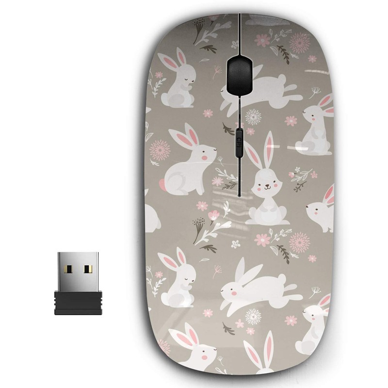 KAWAMOUSE 2.4G Ergonomic Portable USB Wireless Mouse for PC, Laptop, Computer, Notebook with Nano Receiver (Easter Design Bunnies)