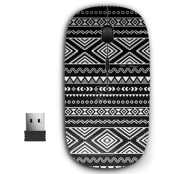 KAWAMOUSE 2.4G Ergonomic Portable USB Wireless Mouse for PC, Laptop, Computer, Notebook with Nano Receiver (Folk Aztec Ornament)