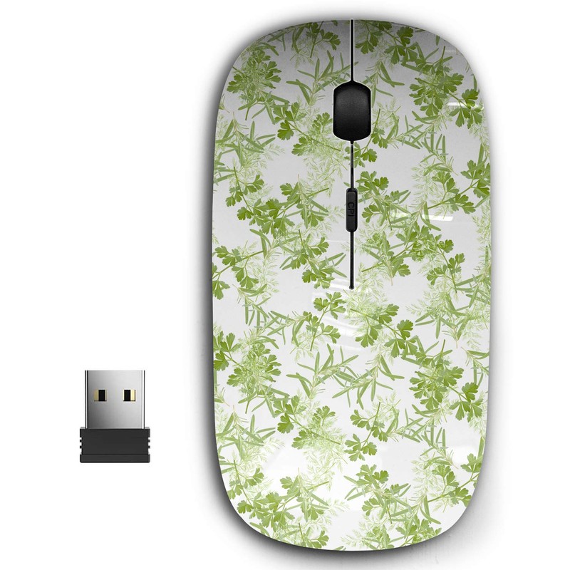 KAWAMOUSE 2.4G Ergonomic Portable USB Wireless Mouse for PC, Laptop, Computer, Notebook with Nano Receiver (Fresh Herbs On White)