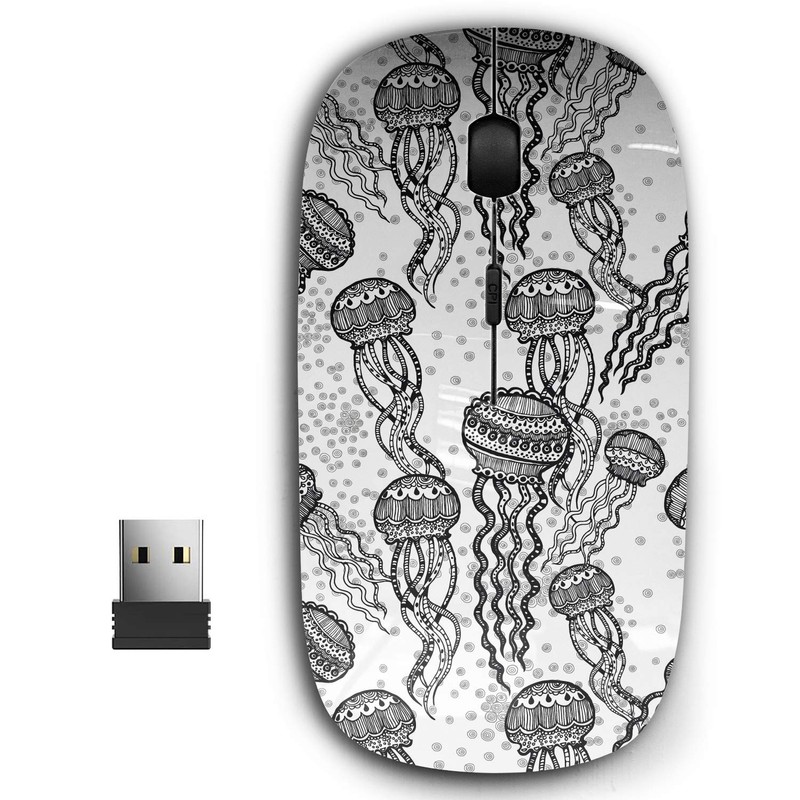KAWAMOUSE 2.4G Ergonomic Portable USB Wireless Mouse for PC, Laptop, Computer, Notebook with Nano Receiver (Graphically Jellyfish)