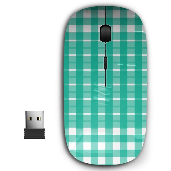 KAWAMOUSE 2.4G Ergonomic Portable USB Wireless Mouse for PC, Laptop, Computer, Notebook with Nano Receiver (Green White Gingham)