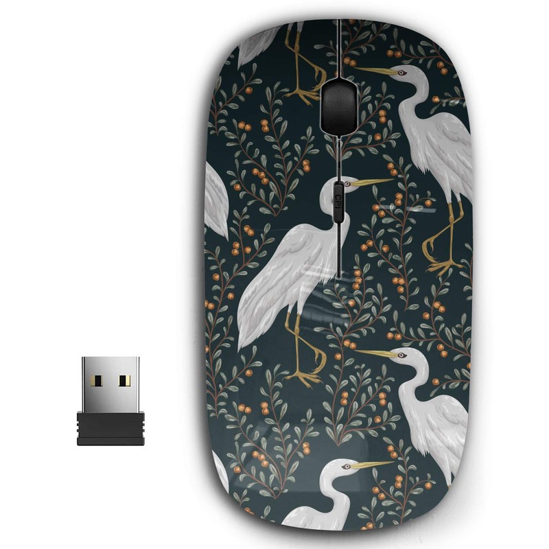 KAWAMOUSE 2.4G Ergonomic Portable USB Wireless Mouse for PC, Laptop, Computer, Notebook with Nano Receiver (Heron Bird Cranberry)