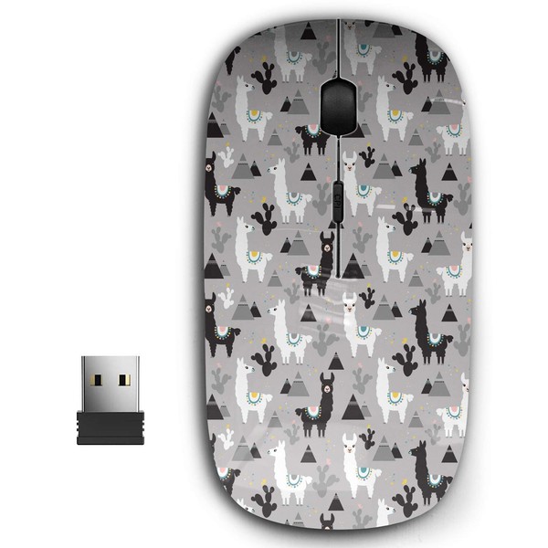 KAWAMOUSE 2.4G Ergonomic Portable USB Wireless Mouse for PC, Laptop, Computer, Notebook with Nano Receiver (Llama Cactus Mountains)
