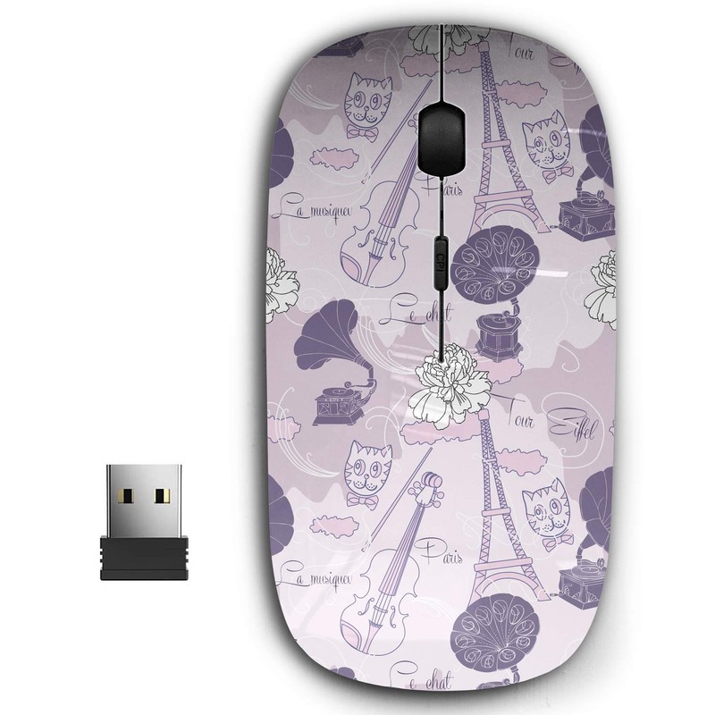 KAWAMOUSE 2.4G Ergonomic Portable USB Wireless Mouse for PC, Laptop, Computer, Notebook with Nano Receiver (Paris Flowers Gramophone)