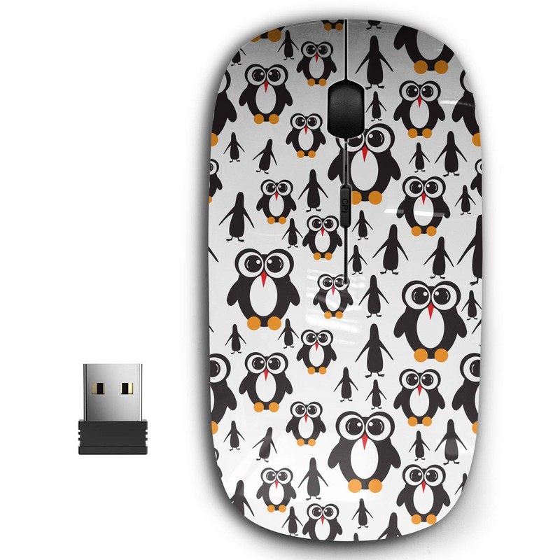 KAWAMOUSE 2.4G Ergonomic Portable USB Wireless Mouse for PC, Laptop, Computer, Notebook with Nano Receiver (Penguin Large Eyes)