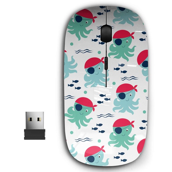 KAWAMOUSE 2.4G Ergonomic Portable USB Wireless Mouse for PC, Laptop, Computer, Notebook with Nano Receiver (Pirate Octopus)