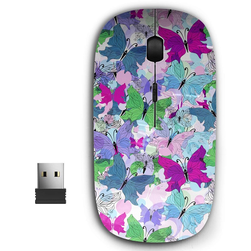 KAWAMOUSE 2.4G Ergonomic Portable USB Wireless Mouse for PC, Laptop, Computer, Notebook with Nano Receiver (Spring Translucent Butterflies)