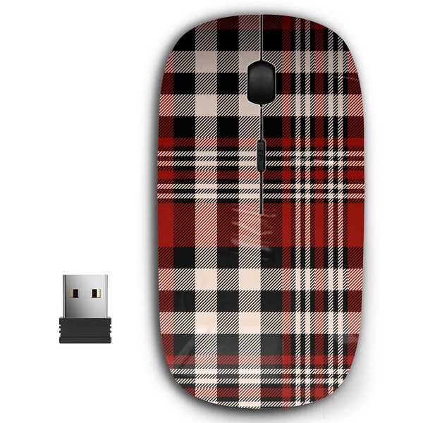 KAWAMOUSE 2.4G Ergonomic Portable USB Wireless Mouse for PC, Laptop, Computer, Notebook with Nano Receiver (Tartan Plaid Checkered)