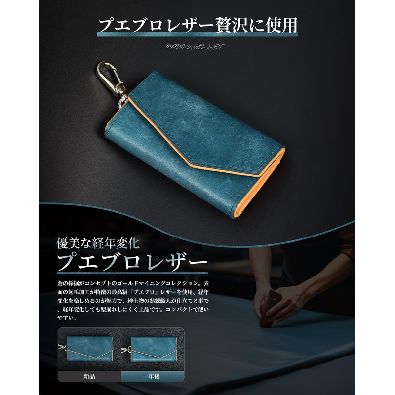 - (Italian Exported Pueblo Leather) Pueblo leather is a kind of vegetable tanned leather with a unique texture that is very high quality in Italy. Pueblo leather imported directly from Italy is meticulously hand processed by Japanese skilled craftsmen, this key case combines beautiful texture and durability. The surface of the leather is scratched, giving it a delicate and unique texture. In order to prevent damage to the leather, the interior is made of soft fleece material that gently protects your precious men's key case