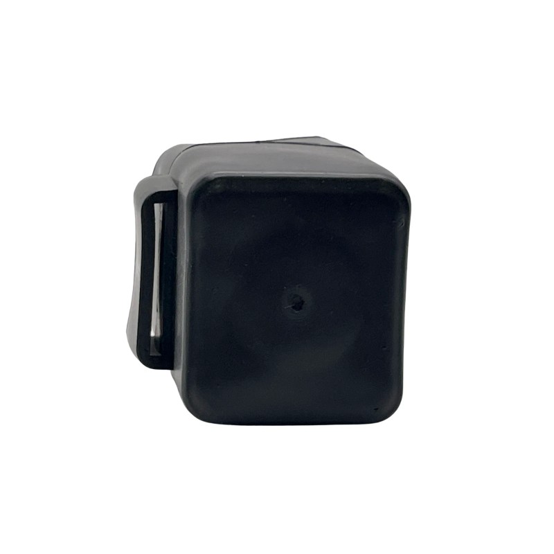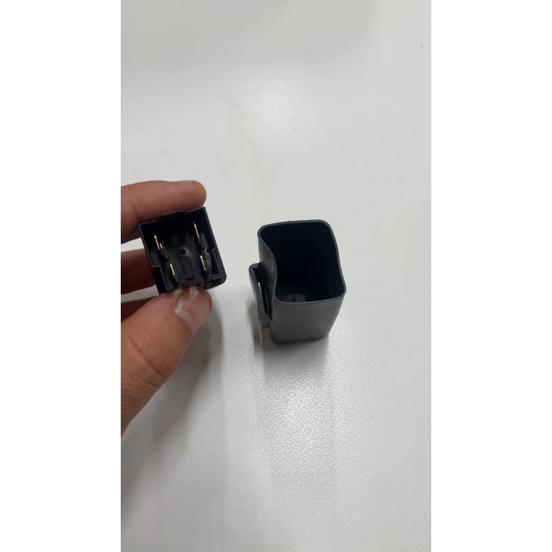 Don't be fooled by cheap unsealed plastic knockoffs. This relay has a heavy duty metal casing under a waterproof cover, 4 male terminals and two catches, one on each side.