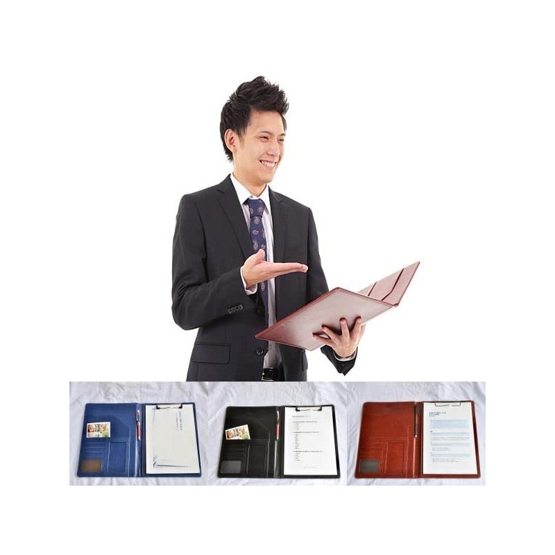 kawauso Binder a4 a5 Clipboard Bi-Fold PU Leather (Black, Brown, Navy, Light Blue) (A4))