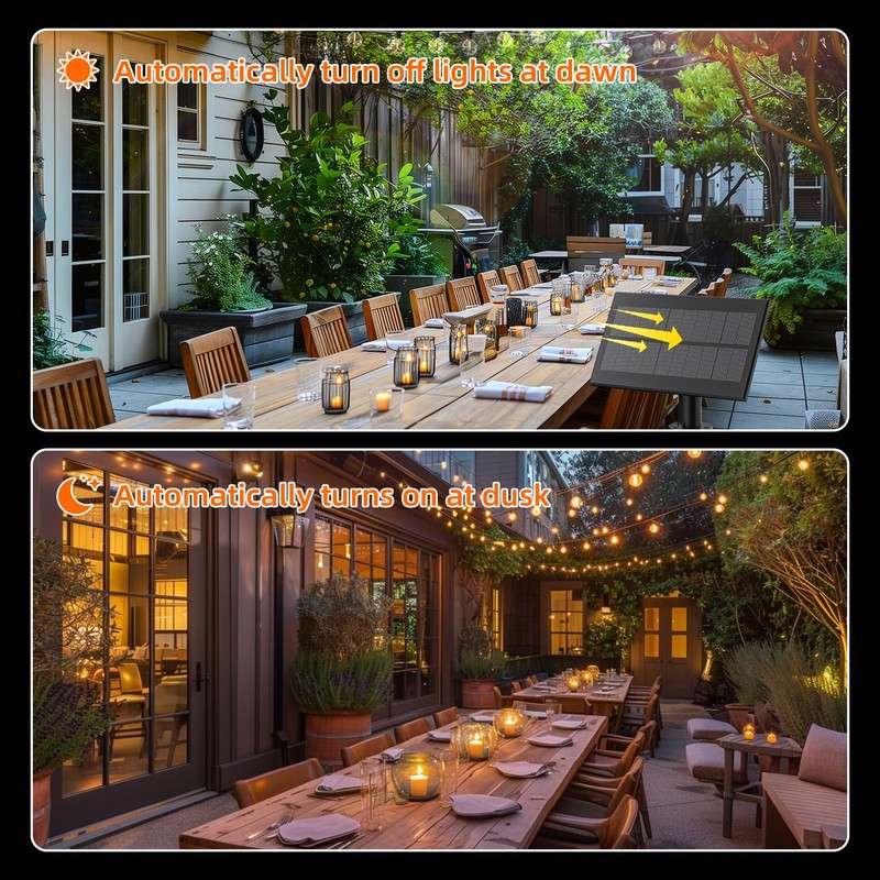 - AUTOMATIC SWITCH AND 5 LIGHT MODES: The solar panel has a built-in light sensor, which can automatically charge during the day, automatically turn on the lighting at dusk, and automatically turn off the lights at dawn. Featuring 5 versatile light modes (steady on, slow flash, fast flash, pulsating flash, breathing flash), it allows you to create various atmospheric scenes to suit your needs.