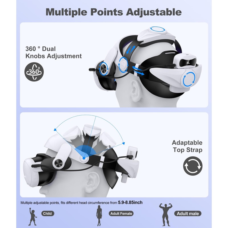 - Facial Decompression: Ergonomically designed with a forehead support pad, adjustable top strap, large back pad,the multi-point adjustable VR headset strap evenly distributes weight. The battery for a better balance, ensure comfort during long gaming sessions
