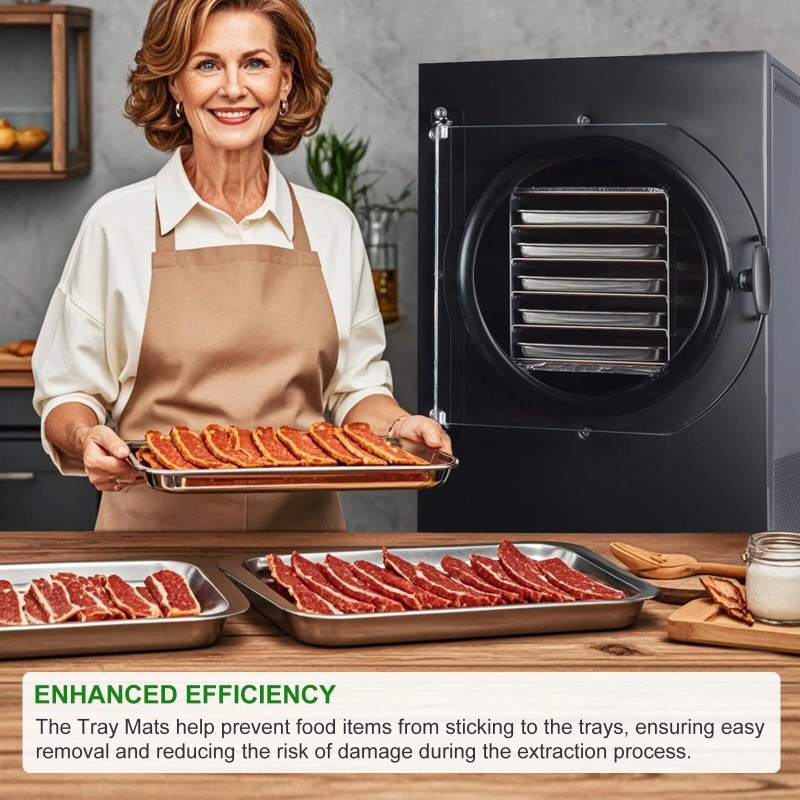 - 【Enhanced Efficiency】The tray mats help prevent food items from sticking to the trays, ensuring easy removal and reducing the risk of damage during the extraction process. They also provide a clean surface for your freeze-dried products, maintaining their quality.