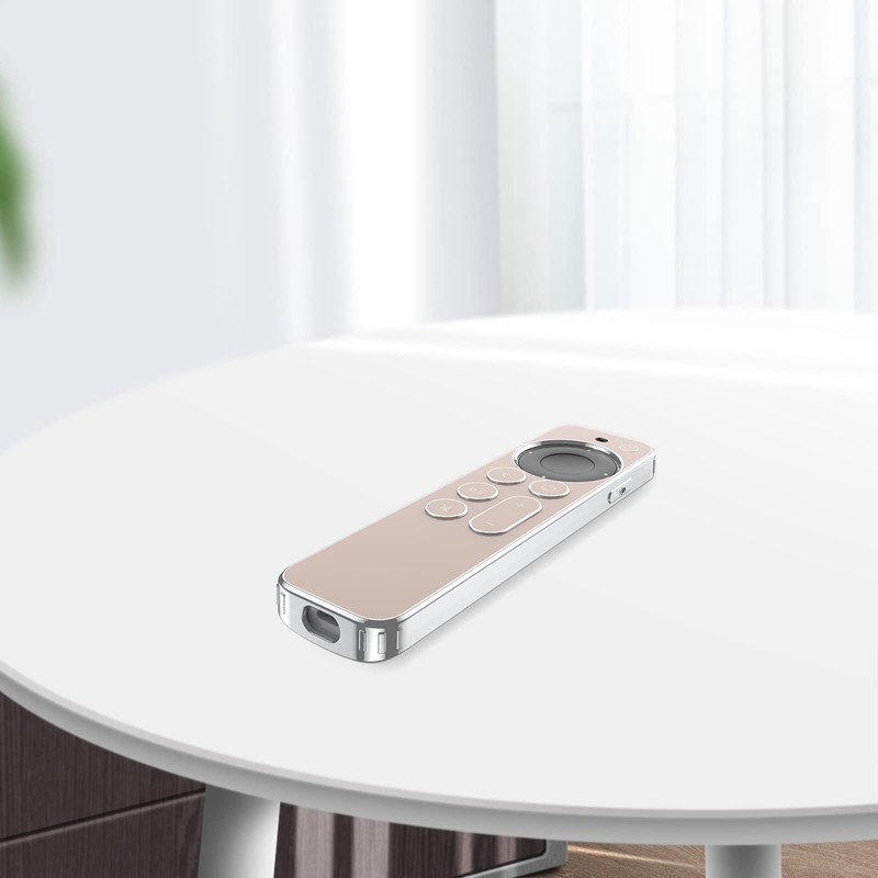 Kawoco Remote Protective Case Compatible with Apple TV 4K / HD Siri Remote 3rd / 2nd Generation (2022/2021), Anti-Slip/Drop-Proof/Dust-Proof TPU Remote Controller Cover - Pink/Silver