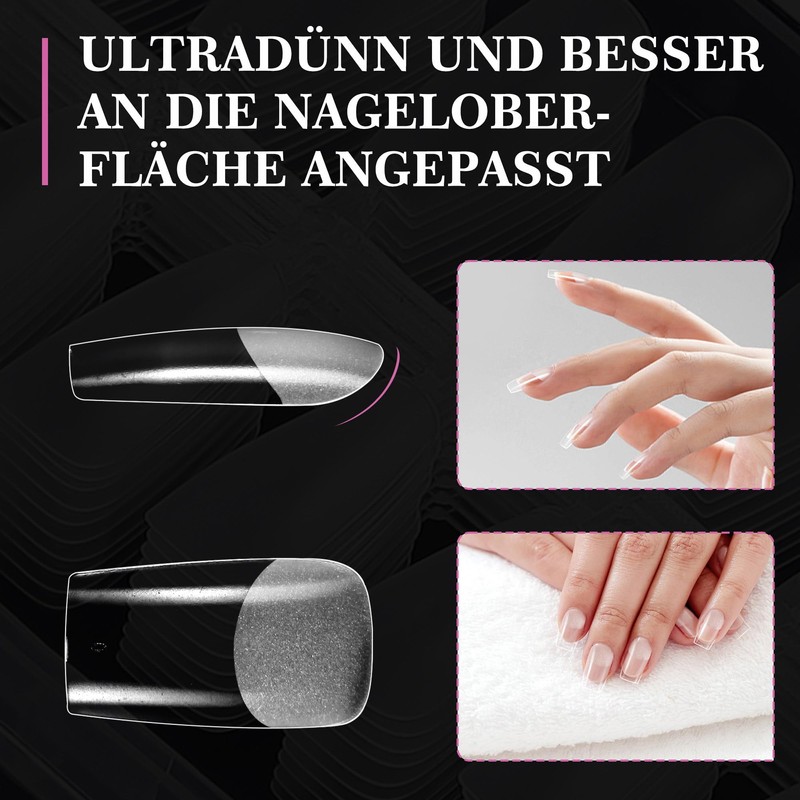 - Naturally Traceless: 1mm thin back edge which is thin and fits well with nails. Thickened front edge, not easy to break. After wearing correctly, it is durable enough to last about 2-3 weeks.