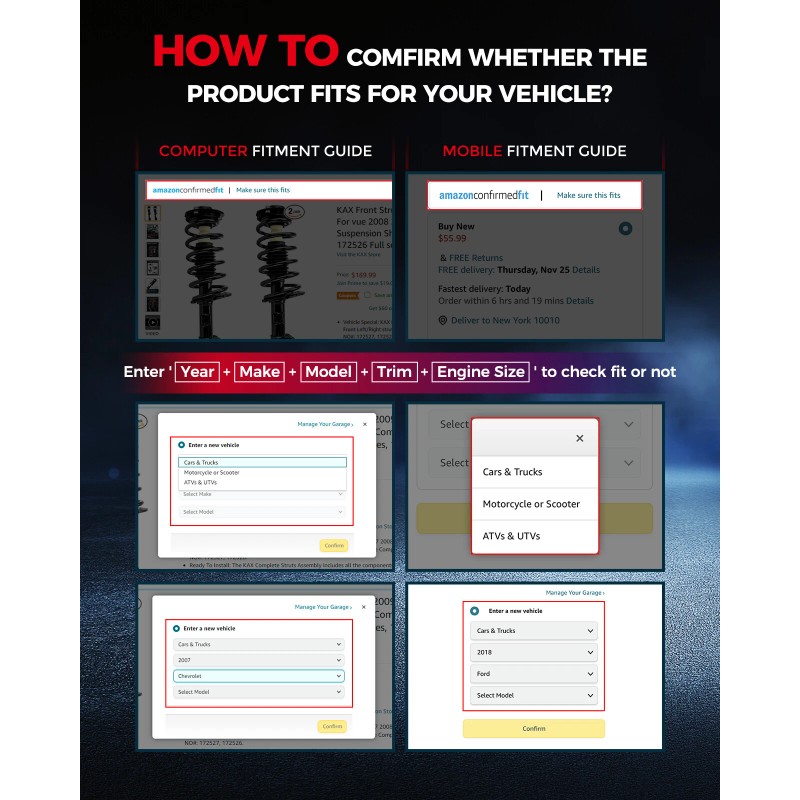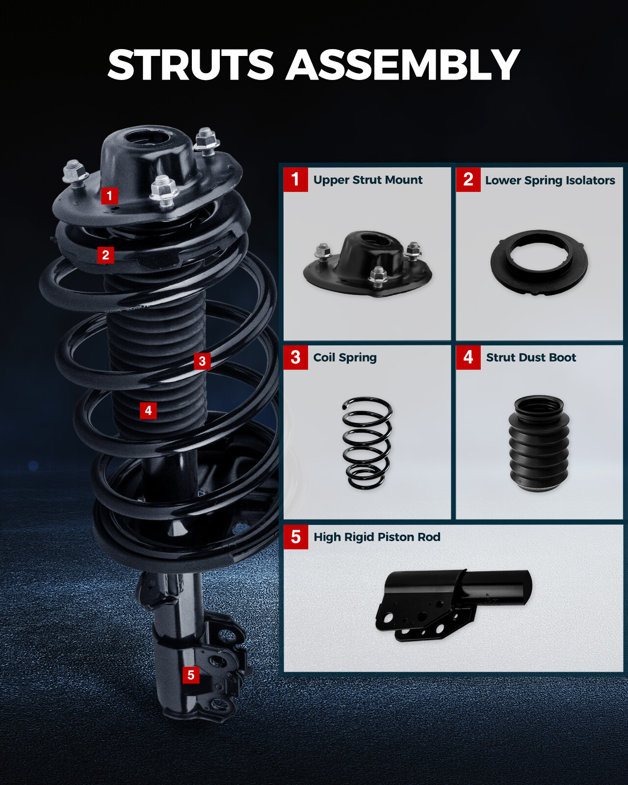KAX 2PC Front Quick Complete Strut Coil Spring For 1998-2003 Toyota Sienna V6 3.0L