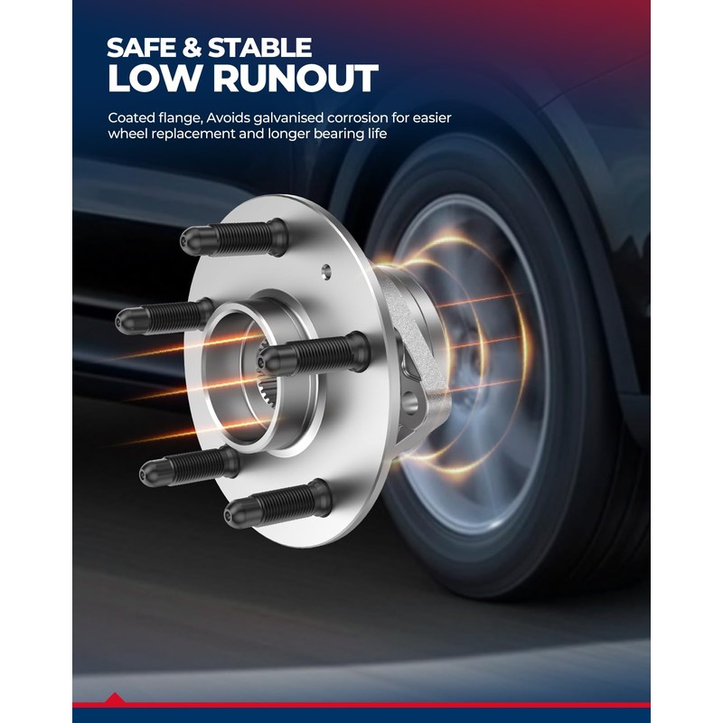 - 【Excellent Performance】:KAX wheel hub bearing assemblies are manufactured with high-quality materials to ensure precise matches, durability, reliability, and premium performance. The high-quality seal design ensures that the hub bearings are clean, long-lasting and minimize noise and vibration. Wheel bolts with a protective coating that makes it easier to disassemble and properly twist the wheel nuts.