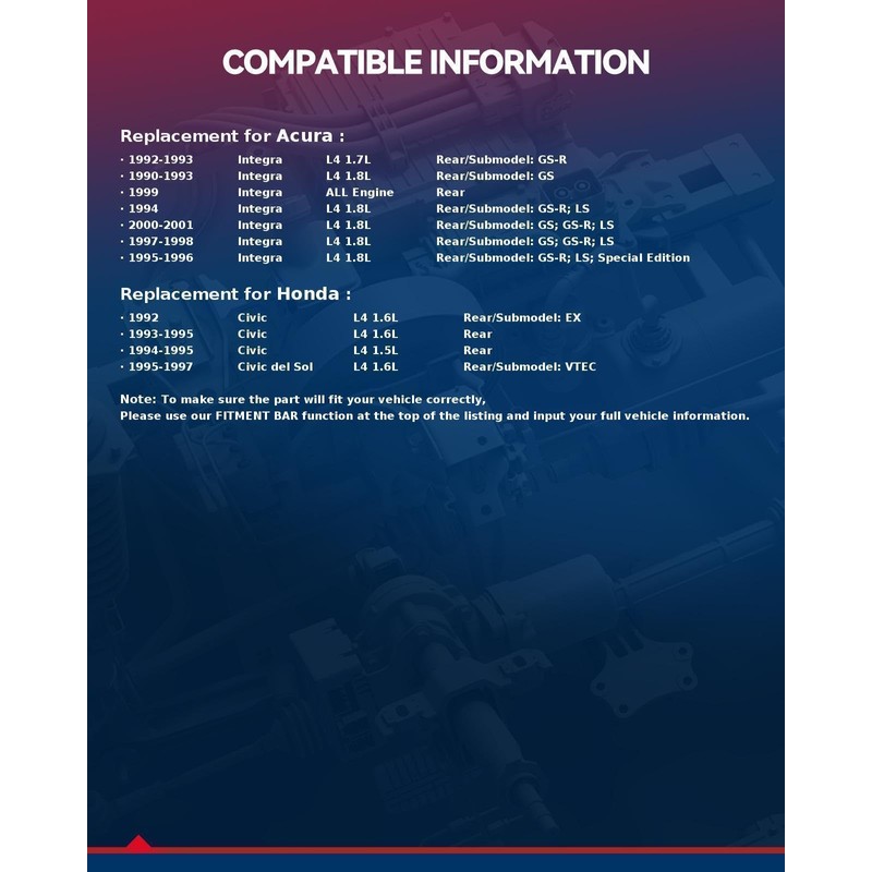 - 【Vehicle Compatible】:513105 Wheel Bearing and Hub Assembly fits for 1992-1995 Civic, 1990-2001 Integra, 1995-1997 Civic del Sol