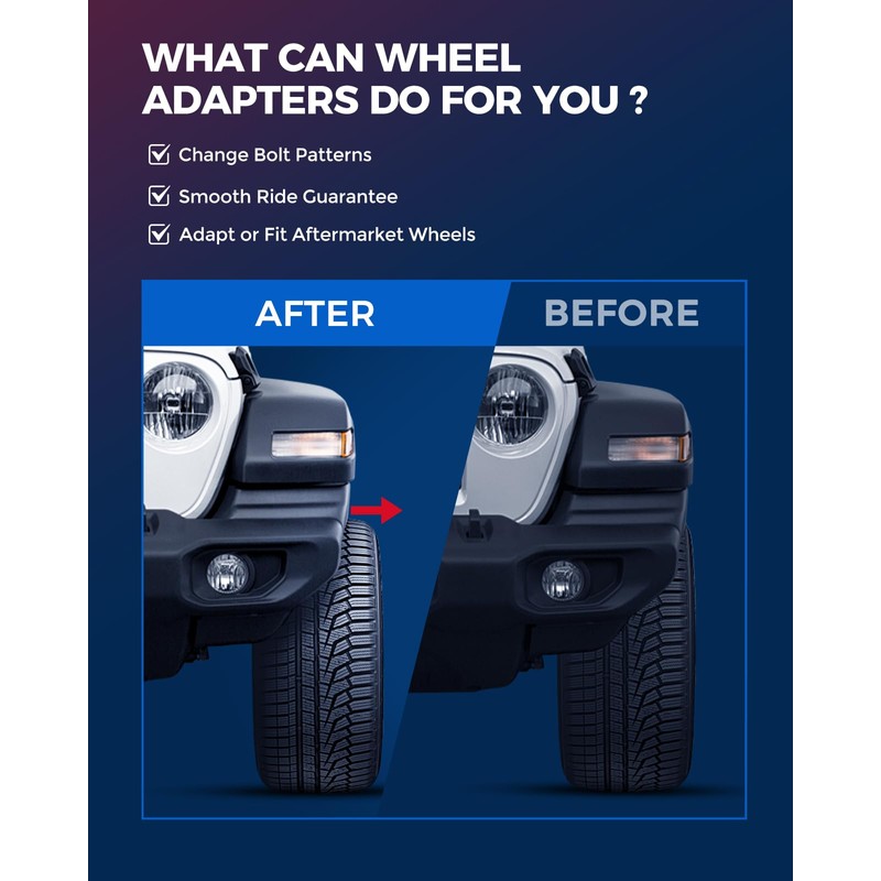 • ➤Why Install Wheel Adapters: 5x5 to 5x4.75 wheel adapters are used to change bolt patterns in order to properly fit wheels from one vehicle to the hub of a different vehicle. And 1.25 inch wheel adapter can account for offset, push the wheels out further.