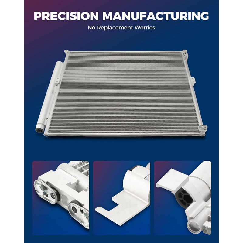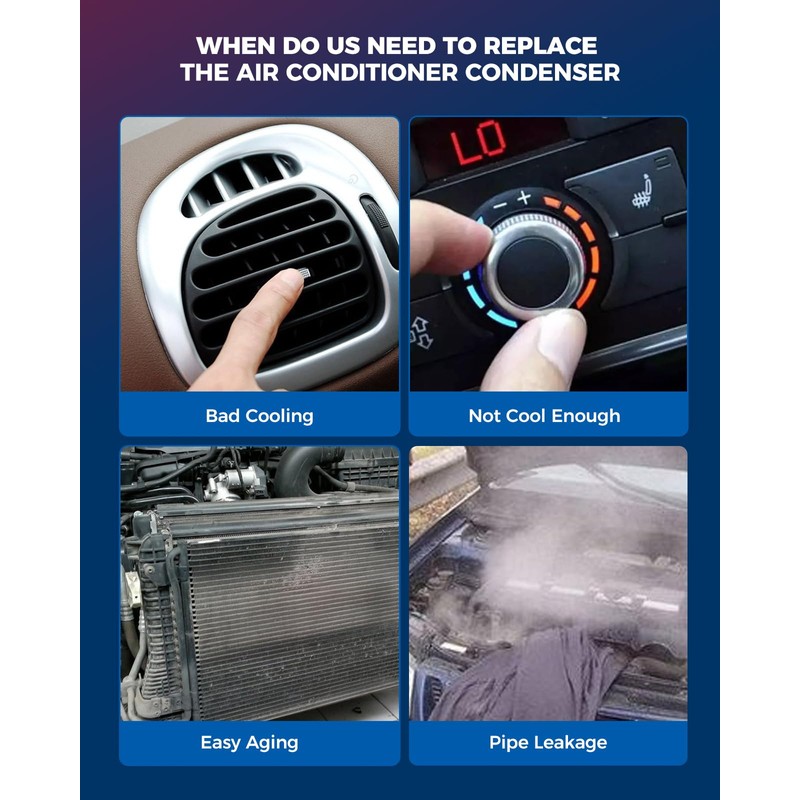 • EFFCIENT COOLING CAPACITY: Using light and thin aluminum tubes to maximize heat transfer without compromising strength. The air conditioner condenser can cool the air inside the car quickly, even in hot environments. This improves your comfort in the car, especially in summer and hot weather