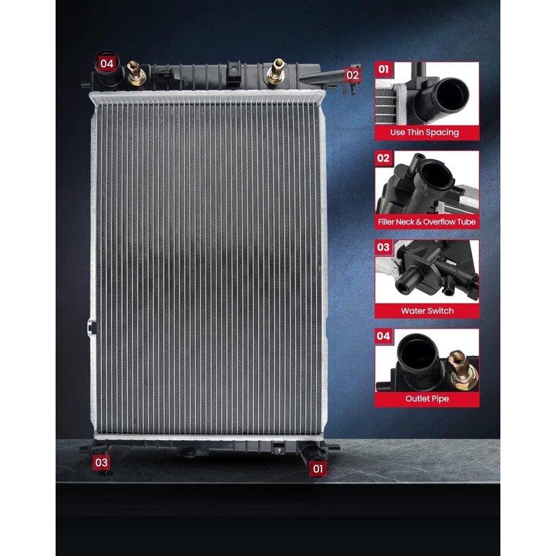 - 【High Efficiency and Durability】Our car radiators are constructed with high-density multi-louver fins, with a larger heat dissipation area for maximum cooling efficiency; they use high-grade plastic water tanks and aluminum cores to prevent corrosion and have excellent thermal conductivity. All radiators have been leak-proof tested, pressure tested, aging and durability tested, and comply with the IATF16949 quality management system, making them more stable, durable and reassuring.