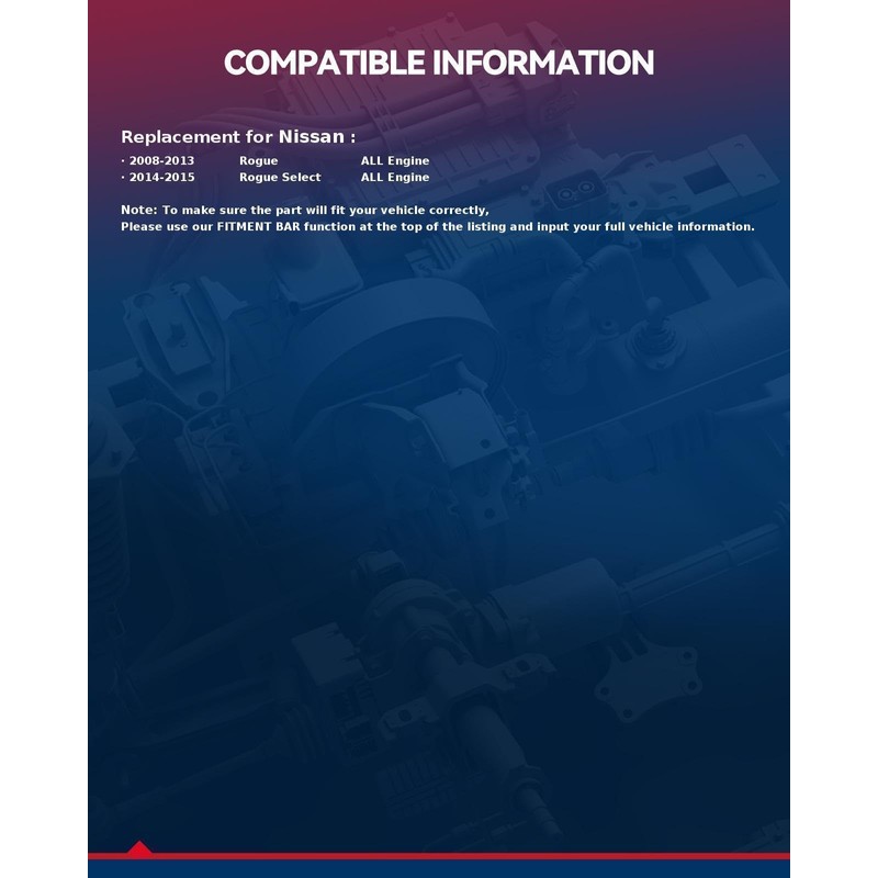 • Compatible Auto List - Replacement for Ni-ss-an Rogue 2008 2009 2010 2011 2012 2013,for N-is-san Rogue Select 2014-2015Verify compatibility with your vehicle model before purchase.