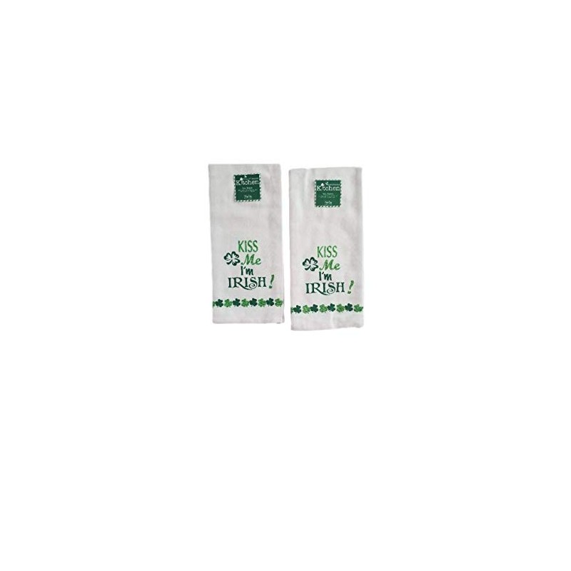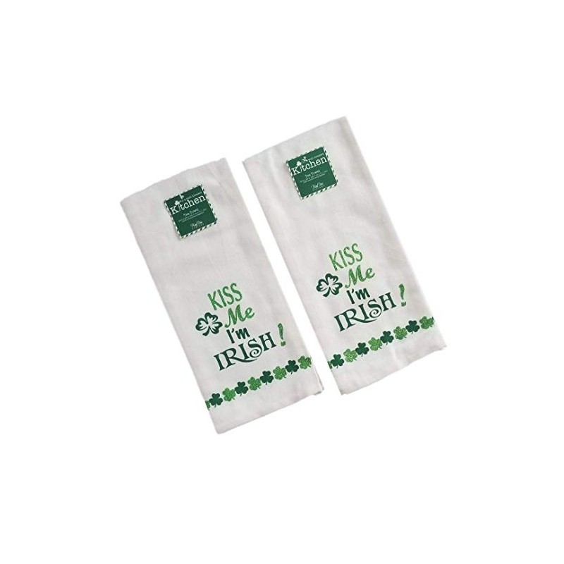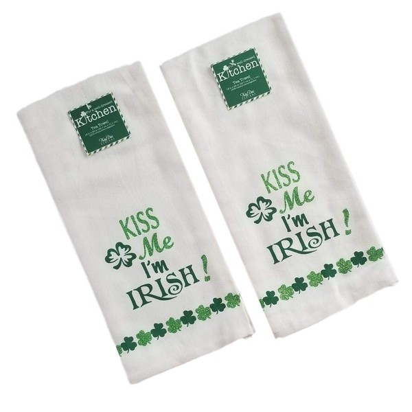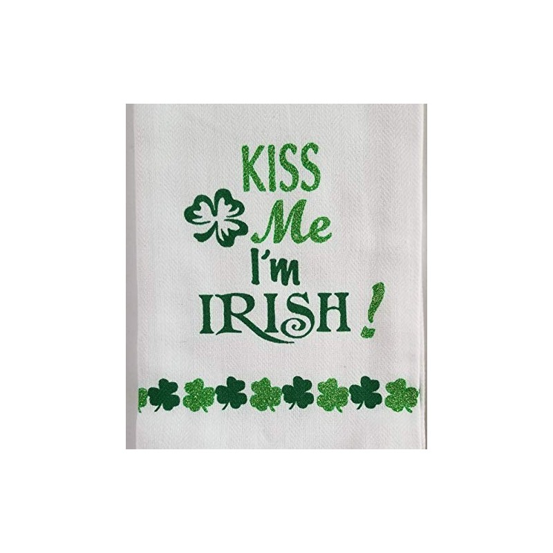 Kay Dee Design St Patricks Day Tea Towel - Kiss Me Im Irish | Shamrocks Glitter Embellished | Flour Sack Set of 2