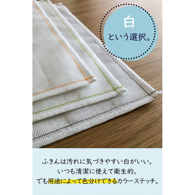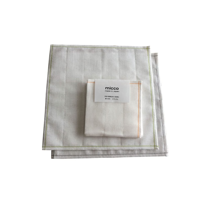 Kaya Dish Towel, White, Made in Japan, Set of 3, 100% Cotton, Approx. 11.8 x 11.8 inches (30 x 30 cm), Table Towel, Nara, Mosquito Net Fabric, 6 Layers, Color Stitching, Color Coding, Micco