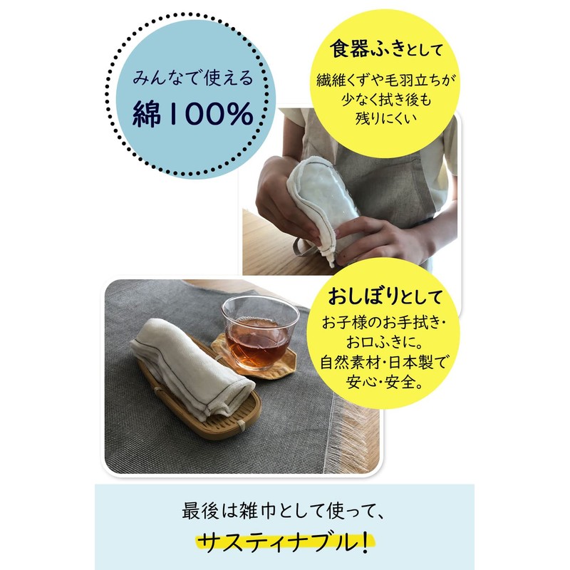 - (100% Cotton for Everyone) Made of 100% natural cotton that can be used not only as a dish towel in various colors but also for wiping your hands or mouth