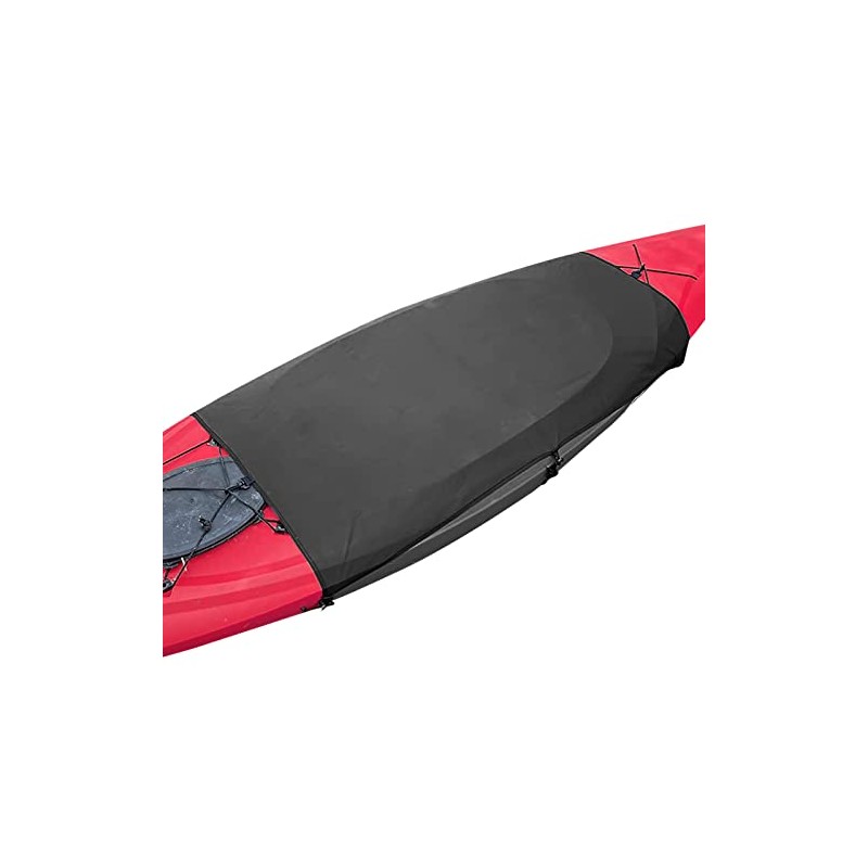 - Adjustable bungee cords wrap around hull of kayak to seal out the elements
