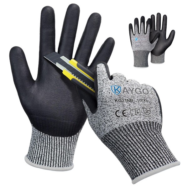 KAYGO Cut Resistant Gloves, MicroFoam Nitrile Coated, ANSI Cut level A3,Superior Grip Performance,Safety Work Gloves For Men and Women, KG21NB, 2 Pairs Grey, X-Large