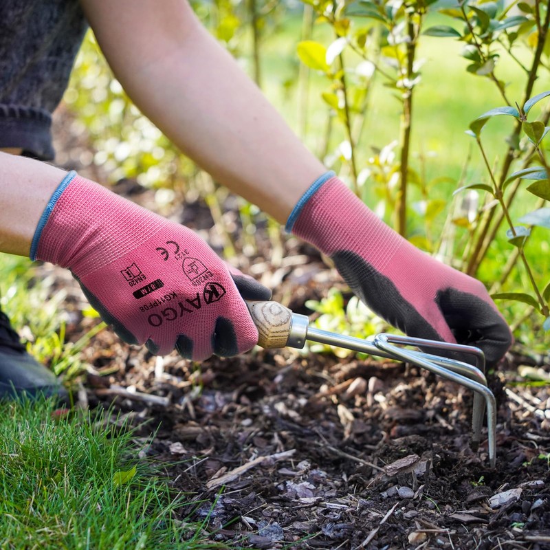 KAYGO Work Gloves PU Coated 12 Pairs, KG11PF, Safety Working Gloves with Secure Grip on Palm & Fingers, for Men and Women, Ideal for General Duty Work, Gardening(Large, Pink)