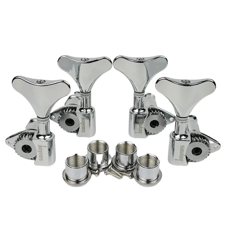KAYNES 1:24 Ratio Silver Electric Bass Guitar Machine Heads Tuners Guitar Tuning Key Pegs Open Gear Replacement for Jazz Precision (2R + 2L, Chrome)