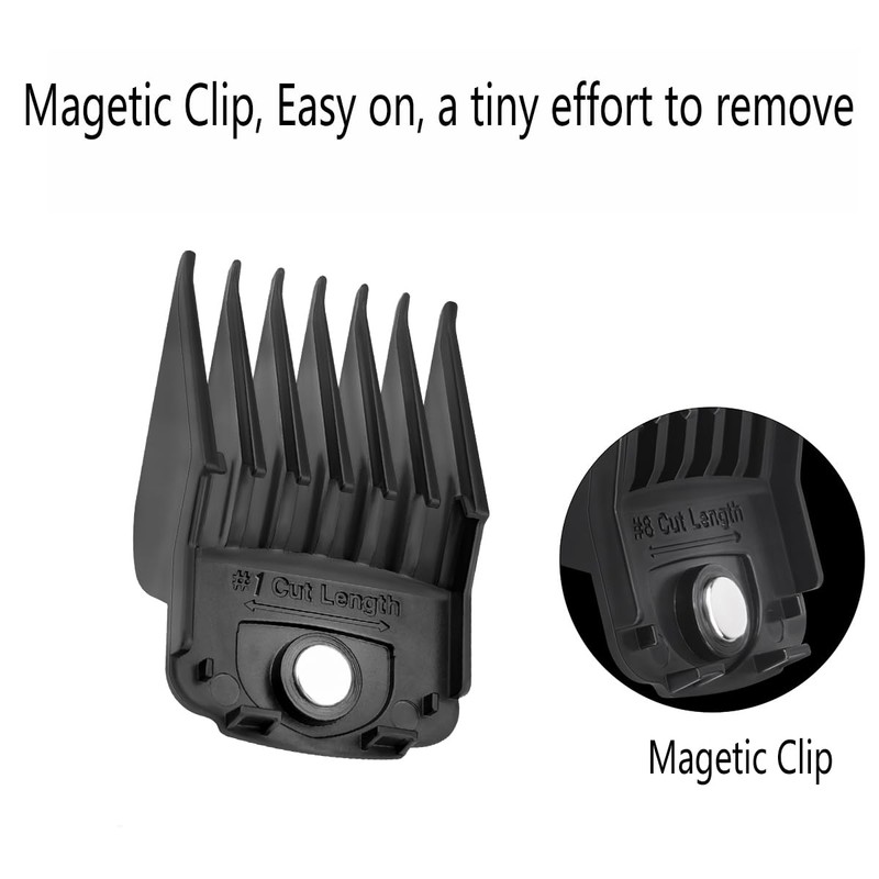 - PERFECT PERFORMANCE BLADE: The Magnetic Clippers guards Fits for Blade Size has 46mm x 38mm (Width adaptation range 42mm-46mm), To ensure that the face will not be scratched during use. Each comb is designed to glide through hair quickly and efficiently for saving time for both you and your client