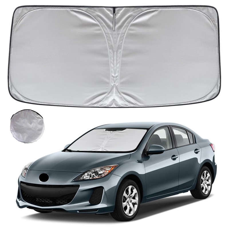 • KAYZT windshield sun shade is precise custom fit for 2010 2011 2012 2013 Mazda 3 Thoroughly covers every corner of the windshield, Tailored to accommodate rear view mirror, Ensuring a seamless and snug fit without obstruction, Must have car accessories for Mazda 3