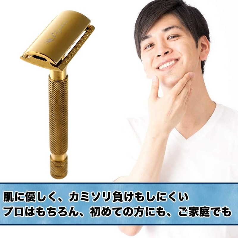 Kazakiri W Aurea Professional Shaving, Double-edged Razor, Main Body + 20 Replacement Blades Included, Razor, Shaving, Face Sledding, Men's, Gold, Gold