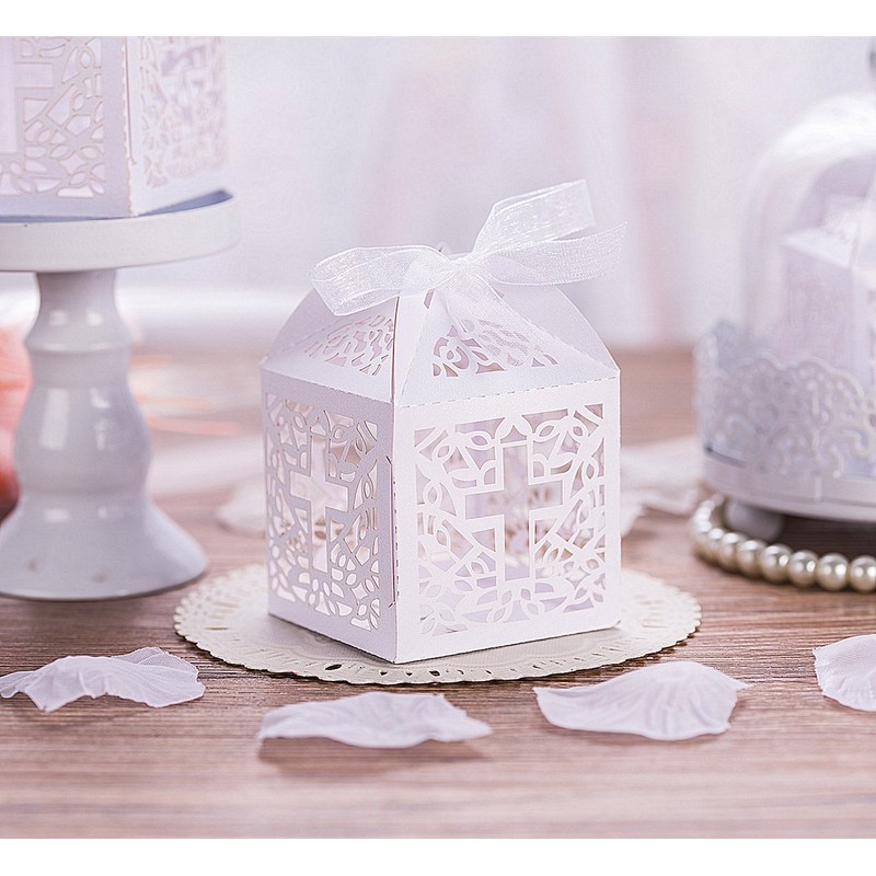 - Tamaño: esta caja de chocolate mide 2.2 x 2.2 x 2.2 pulgadas después de plegarla. Paquete: 50 cajas de regalo de bautizo cortadas con láser con 50 cintas y 50 tarjetas de agradecimiento. Incluye instrucciones (idioma español no garantizado).