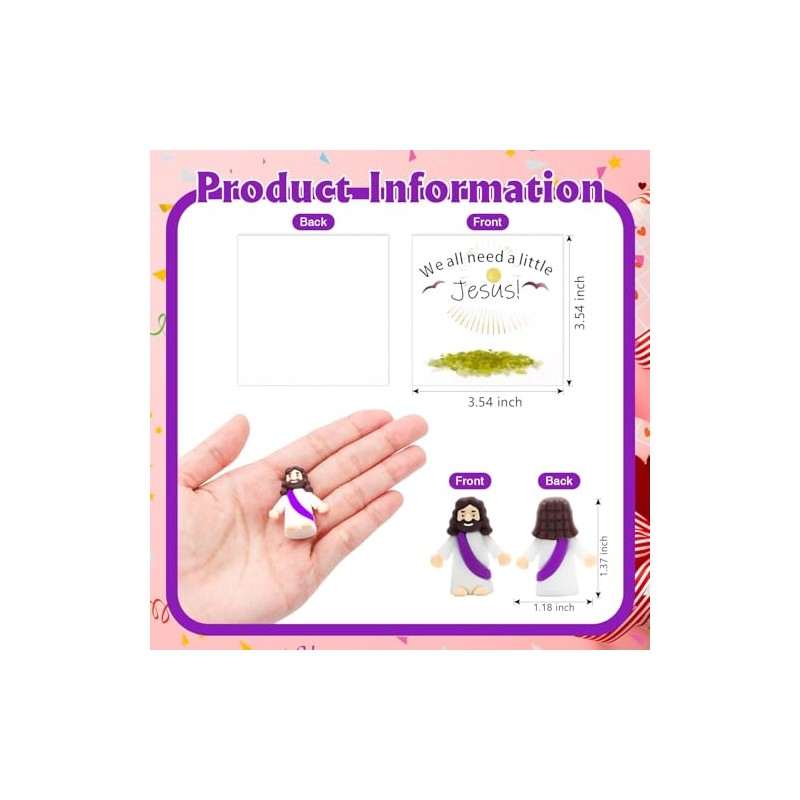 - Little Jesus Figures: This set includes 1 mini Jesus figure, each measuring 3.5cm x 3cm, in a vibrant Purple color.
