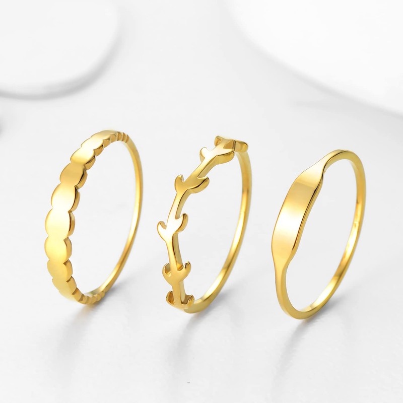 - PERFECT CHOICE: 3-piece unique design style classic ring, high polished design, stainless steel female ring, men. Silver /Gold / Rose Gold choice.