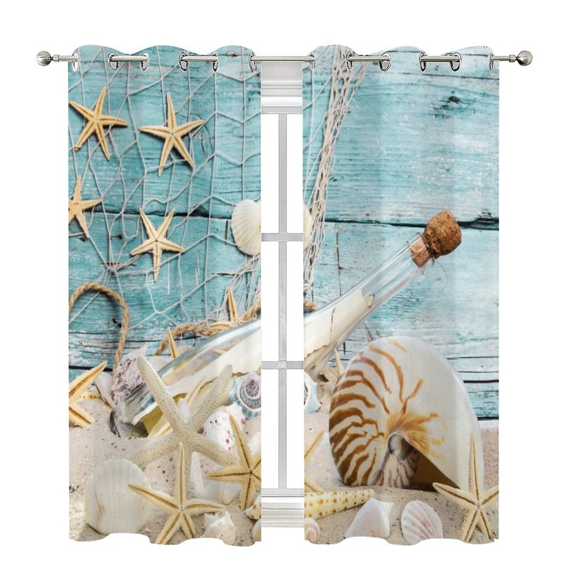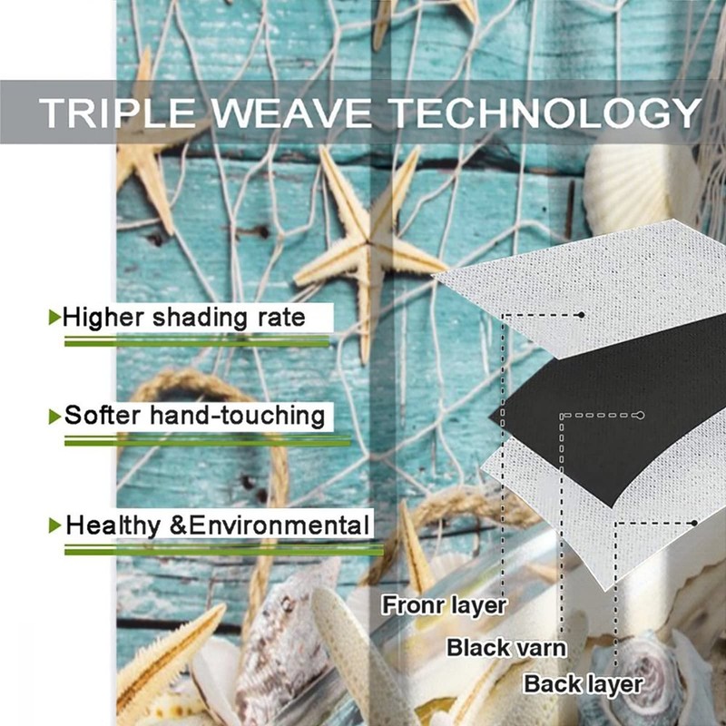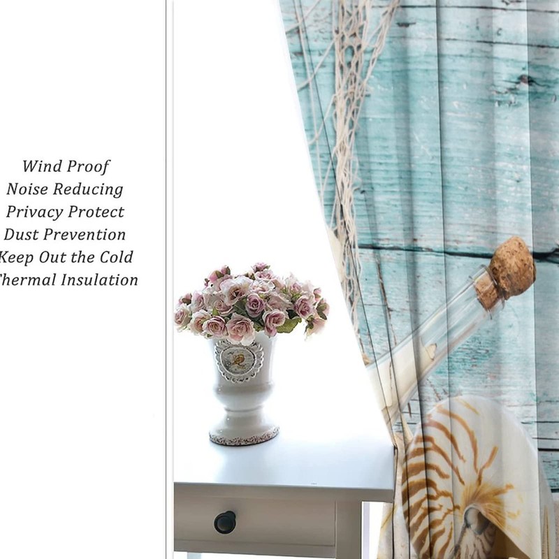 - ✔【Vintage Nautical Beach Theme Grommet Blackout Curtain】The total size is: 42x63in.2 Panels, the size of each 2 Panels is: 21x63in .Natural Feeling. Breathable Fabric.