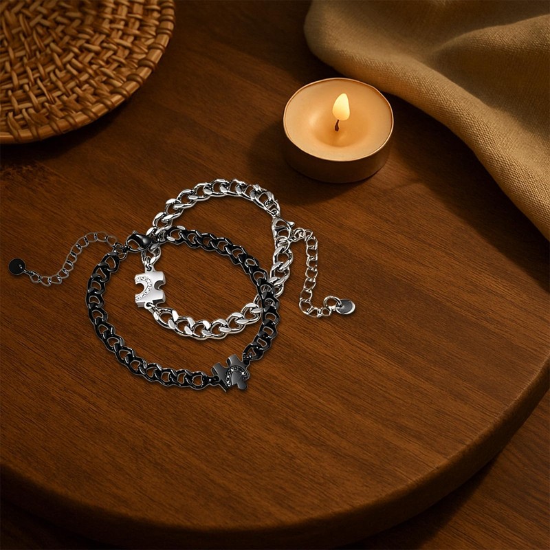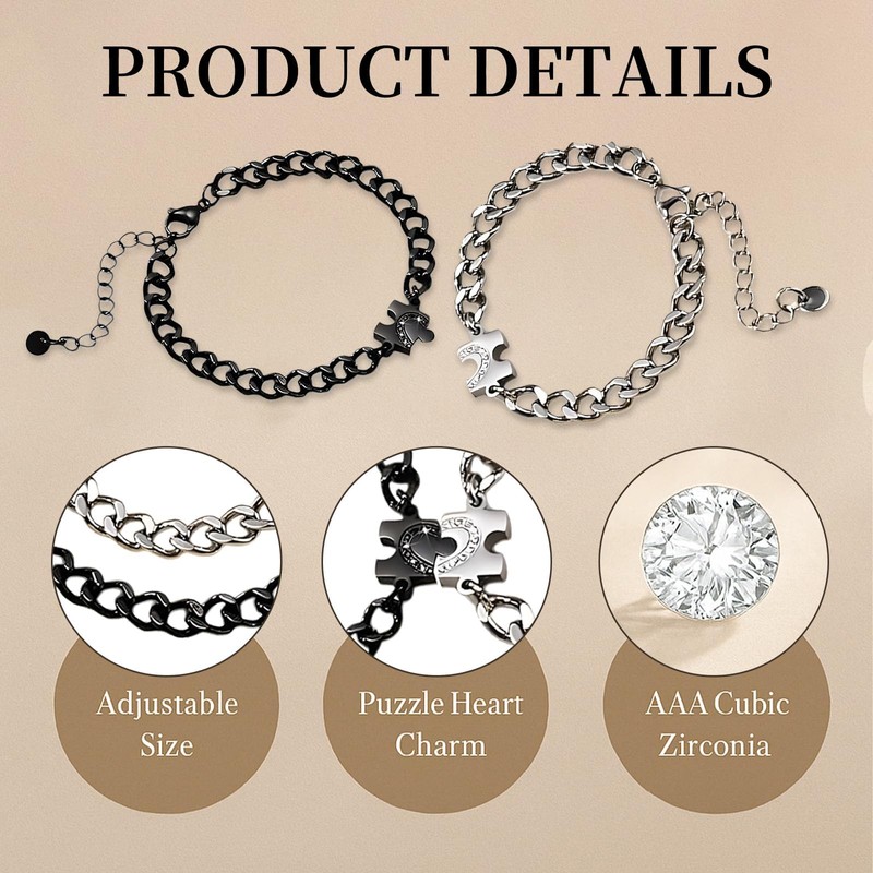 - Puzzle-Design Matching Bracelets: These couples bracelets feature interlocking puzzle pieces that form a heart when joined. Adorned with AAA cubic zirconia, the stainless steel charms offer a sophisticated look while symbolizing connection—ideal for partners who appreciate meaningful jewelry.