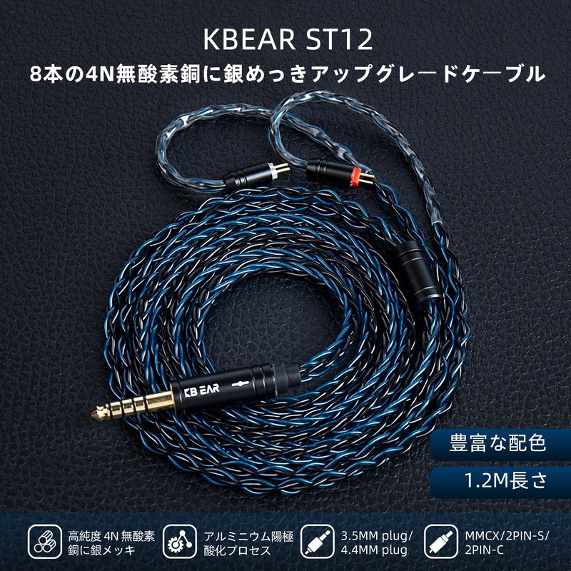 - (36 Model Options) KBEAR ST12/ST12Plus, 1.2M/2M length, 3.5MM/4.4MM plug, barack/gray/barac-blue mix, three colors can be selected. ST12 is 1.2M in length, ST12 Plus is 2M in length. Available in a variety of colors and cable lengths to meet the needs of more users